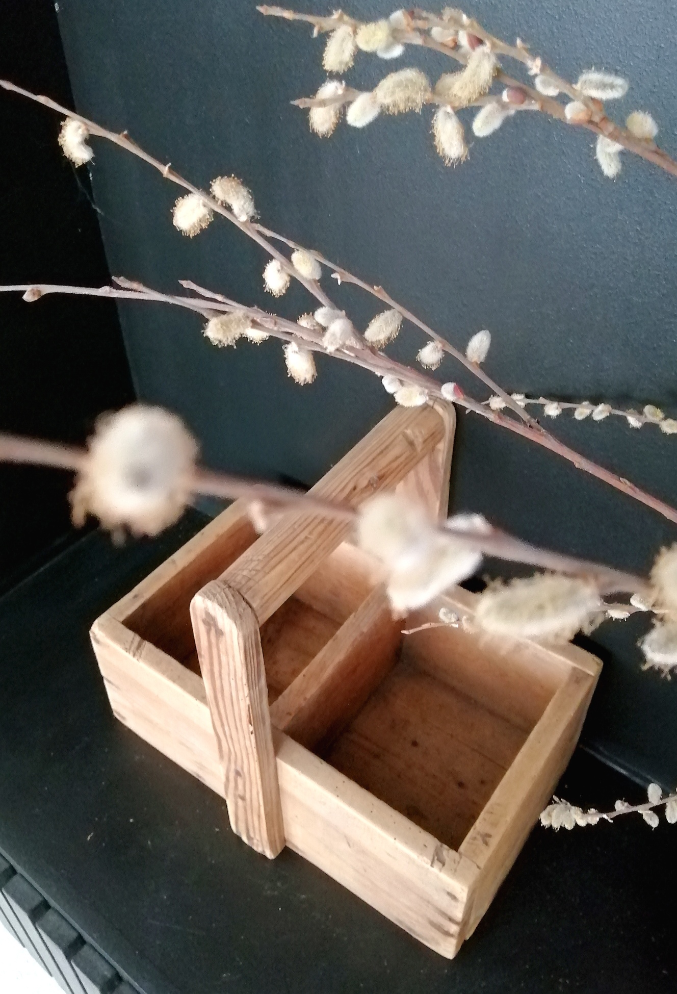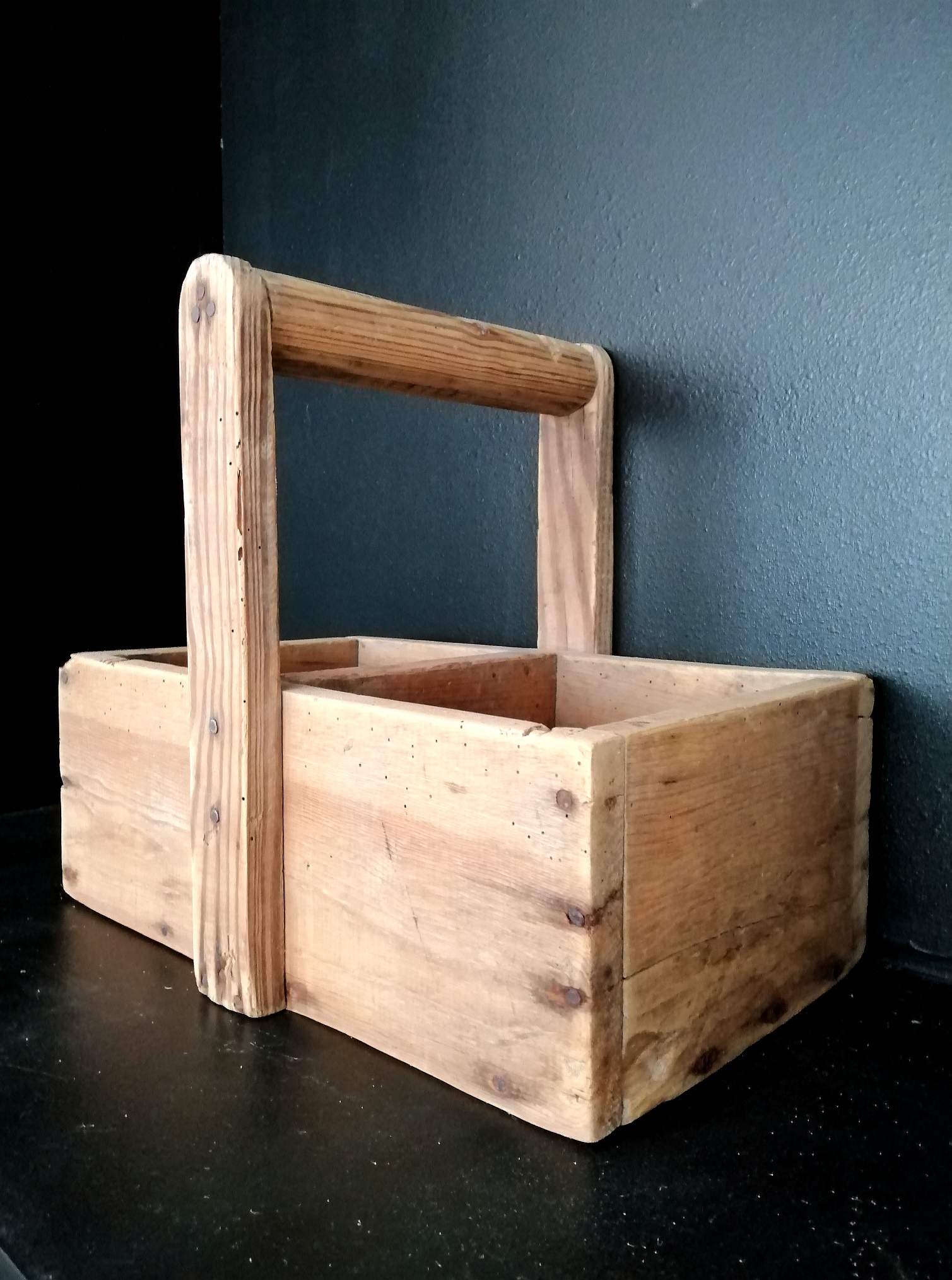 Jolie boîte à outils ancienne, fabriquée artisanalement, elle a été nettoyée puis poncée. Elle présente des marques du temps et d’usure qui lui donnent du charme. Pratique dans la salle de bain ou dans une chambre d’enfant !