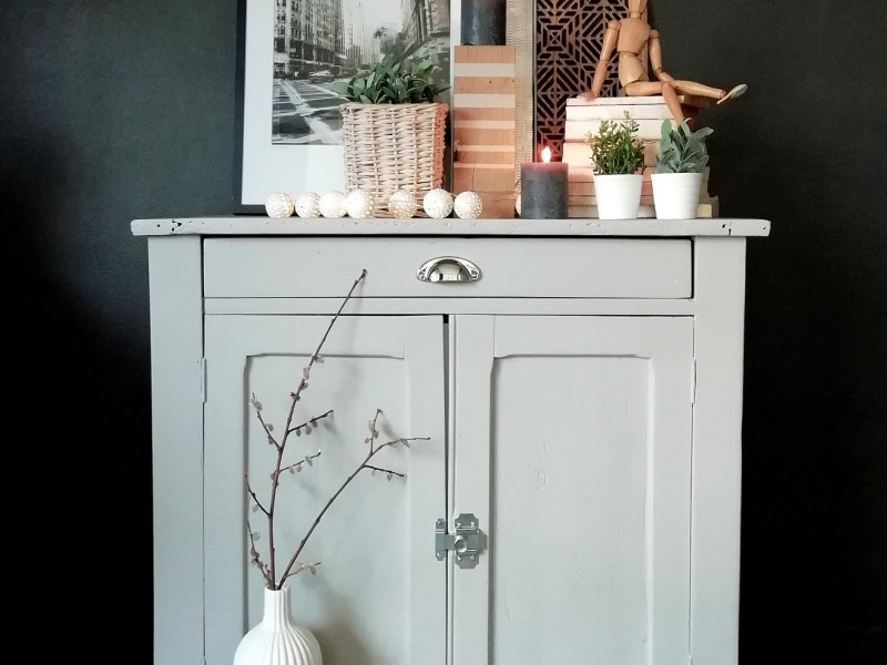 Très beau buffet parisien relooké. Le meuble a été nettoyé, poncé puis repeint en gris beige. Un seul grand tiroir et un bon espace de rangement intérieur. La poignée et le verrou sont neufs. Possibilité de livraison uniquement sur Paris ou proche 95 (20 €).