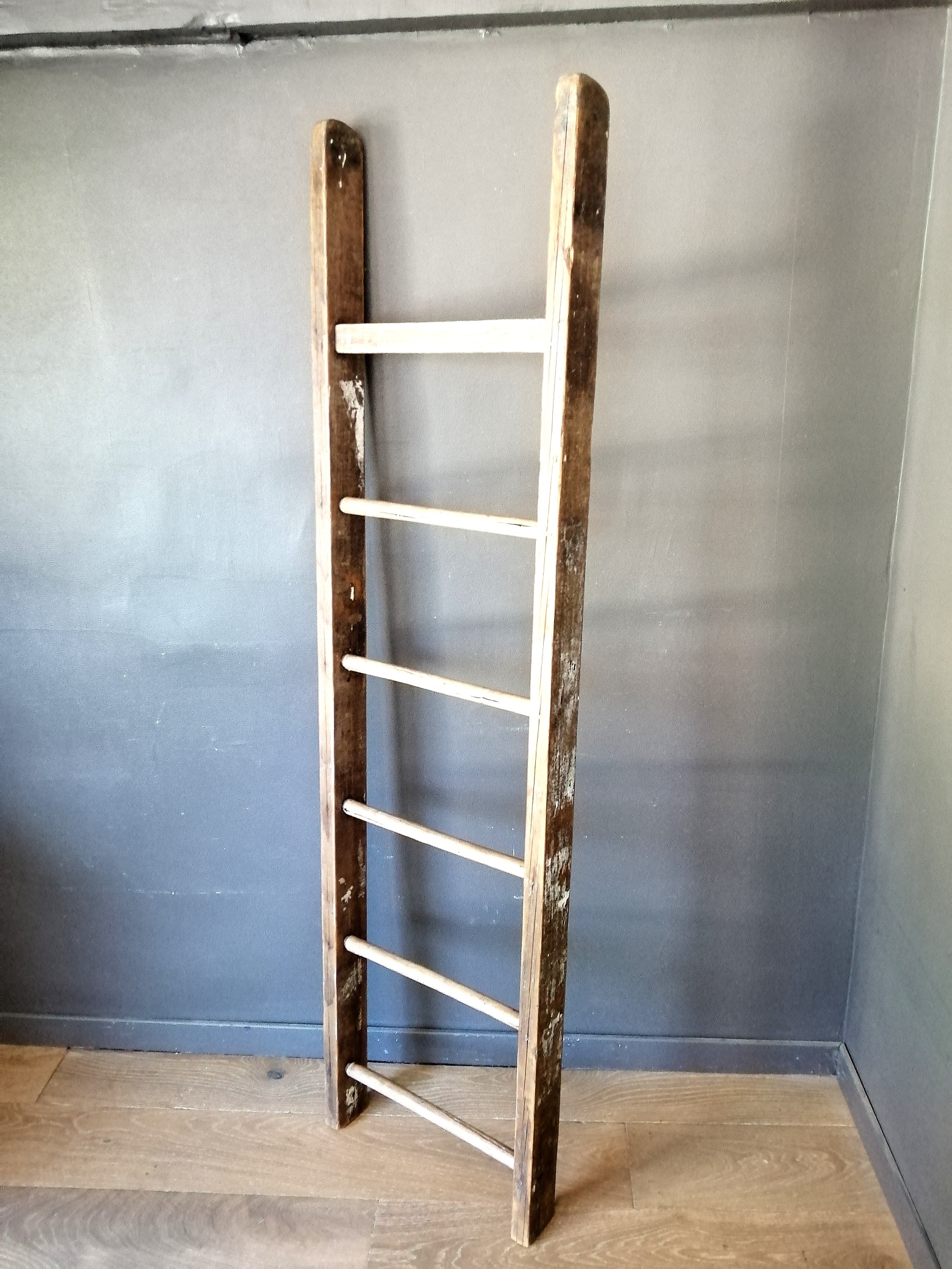 Très belle échelle ancienne en bois. Elle a été nettoyée, poncée puis vernie en mat transparent. Elle garde une patine qui lui donne beaucoup de charme. Idéale en déco dans une salle de bain ou une entrée. Ne peut plus servir à monter !!