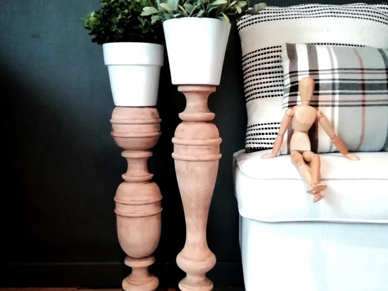Très grands et beaux éléments de décoration en bois. Ils ont été poncés pour être laissés en bois brut. Superbes en support pour des pots de fleurs, jolis en bougeoirs.