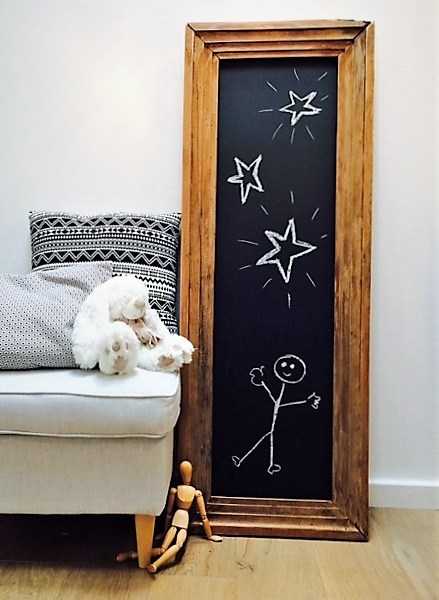 Ancienne fenêtre en bois détournée en tableau noir