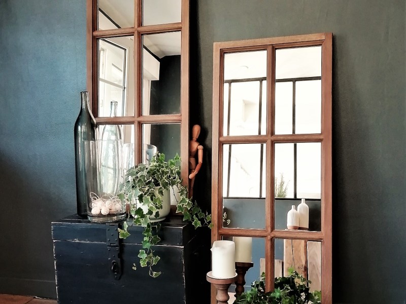 Beaux miroirs faits à partir d’anciens cadres de fenêtres. les cadres en bois ont été poncés afin de garder le bois brut. Les miroirs peuvent être positionnés verticalement comme sur les photos ou horizontalement. Assez étroits, ils sont pratiques dans une entrée, un couloir….