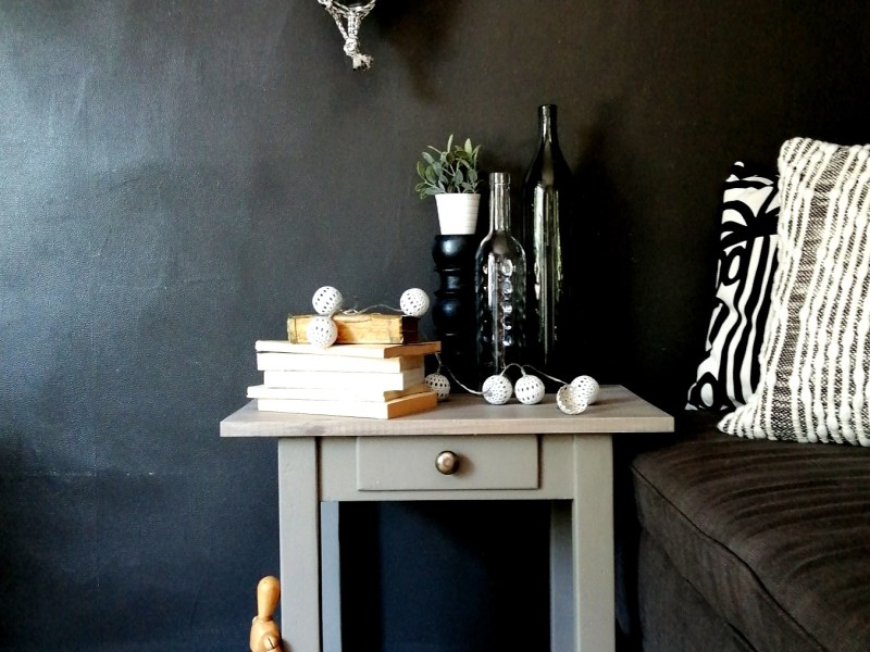 Jolie table de chevet en bois, peinte en gris. Le plateau en pin a été patiné en gris, ce qui laisse apparaître les veines du bois. Un petit tiroir pratique. Possibilité de livraison uniquement sur Paris ou proche du Val d’Oise (20€).
