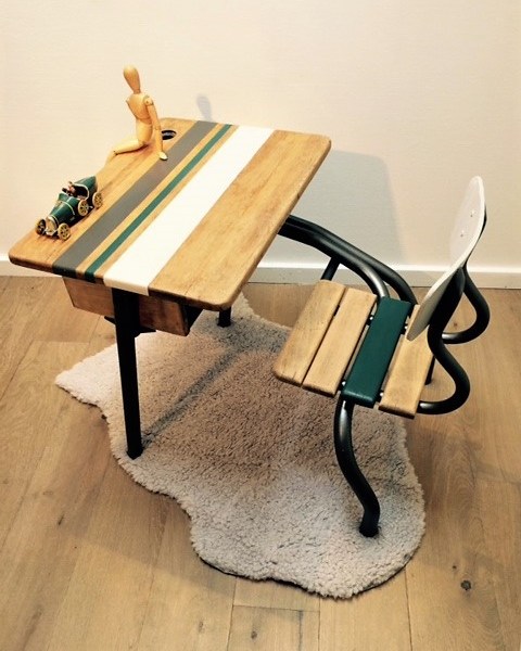 Ancien bureau d’écolier une place. Il possède un casier, un porte-encrier et un crochet sur le coté.